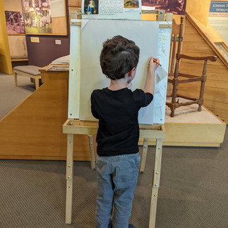 My mom and I spent the afternoon at the museum recently. I started in the Discover London Town exhibit in the Visitor Center. I loved exploring the interactive maps, learning to play Mancala, and drawing.